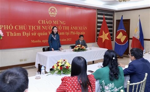 Soulignant le développement continu du partenariat stratégique Vietnam -Philippines, la vice-présidente a exhorté l’ambassade à bien accomplir les tâches à elle confiées, de conseiller le Parti, l’État et le gouvernement dans le renforcement des liens avec les Philippines, et à bien mettre en œuvre la diplomatie économique, le travail consulaire, la diplomatie culturelle et les échanges populaires.