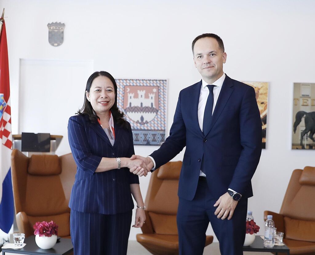 | La vice-présidente vietnamienne Vo Thi Anh Xuân et le secrétaire d'État croate des AE chargé du Commerce extérieur et de la Coopération au développement, Zdenko Lucić, en Croatie. |