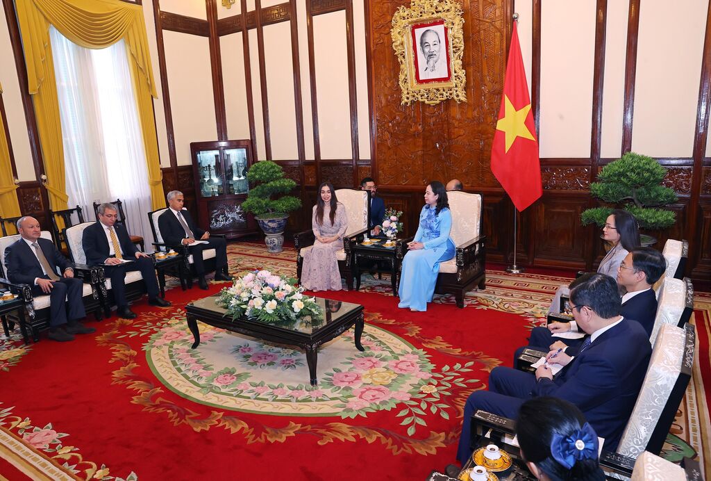 | La vice-présidente Vo Thi Anh Xuân (droite) a reçu Leyla Aliyeva, vice-présidente de la Fondation Heydar Aliyev (Azerbaïdjan). |