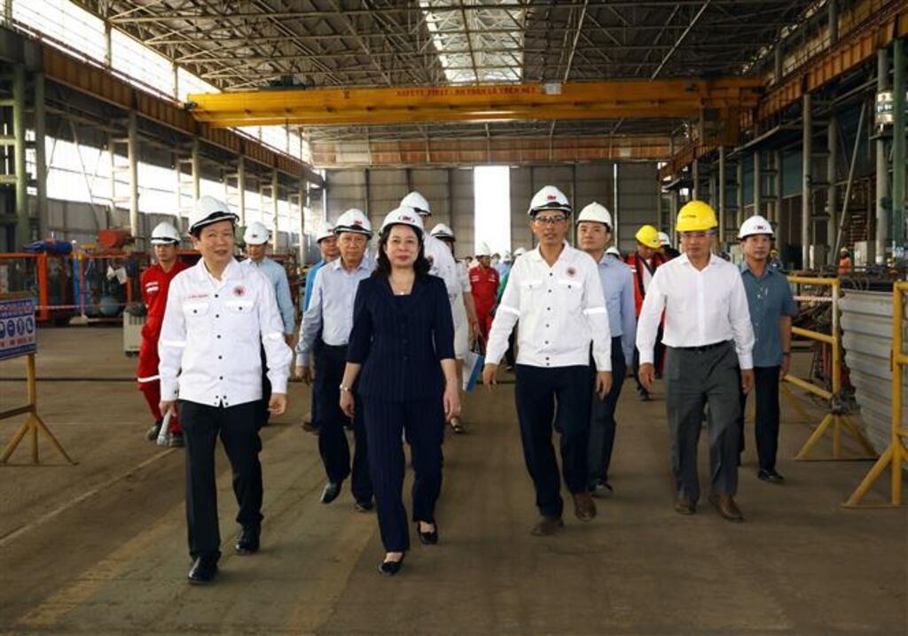 | La vice-présidente Vo Thi Anh Xuân à un établissement de Vietsovpetro à Bà Ria-Vung Tàu. |