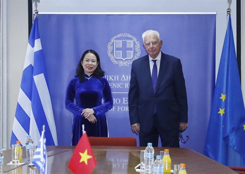 Dans le cadre de sa visite officielle en Grèce, la vice-présidente Vo Thi Anh Xuân s'était entretenue avec le vice-Premier ministre Panagiotis Pikrammenos, a rencontré le secrétaire général du Parti communiste grec Dimitrios Koutsoumpas et a présidé au Forum d’affaires Vietnam - Grèce.