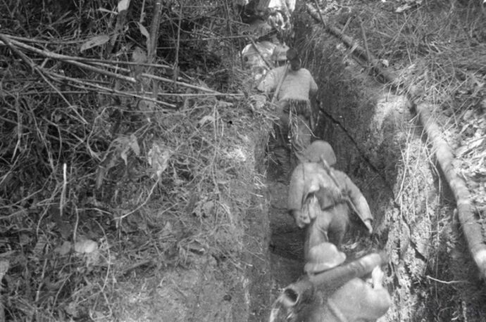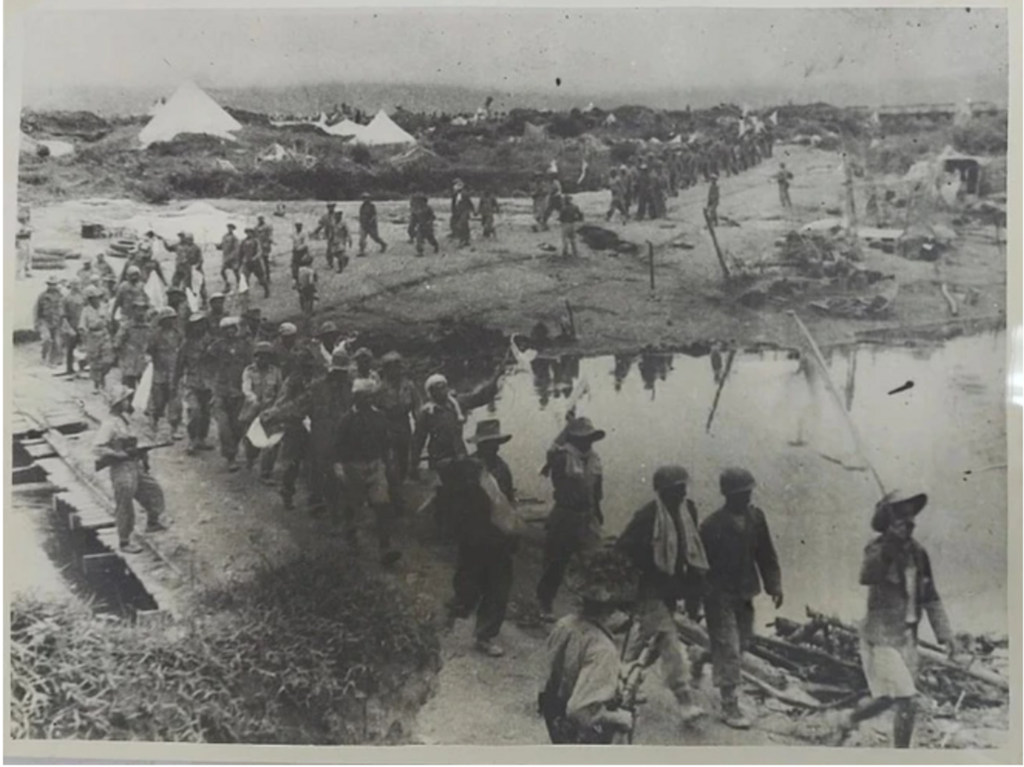 | Les soldats français hissant le drapeau blanc pour se rendre en 1954. |