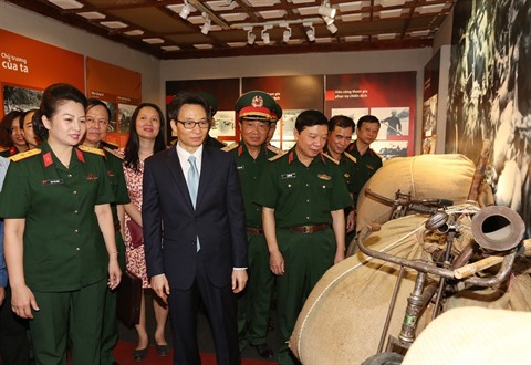 | Le vice-Premier ministre Vu Duc Dam (centre) visite l'exposition. |