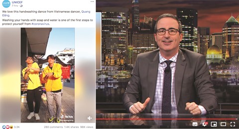| La chanson vietnamienne "Ghen Cô Vy" (Le Coronavirus jaloux), accompagnée d’une danse imitant des gestes de lavage des mains, a été présentée sur l’émission "Last Week Tonight with John Oliver" de la chaîne américaine HBO. |