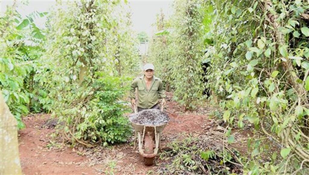 | Un paysan travaillant dans une plantation à Dak Lak. |