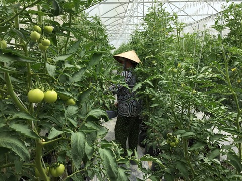 | La ferme du paysan Hô Tân Phong se spécialise dans la culture des tomates sous serre. |