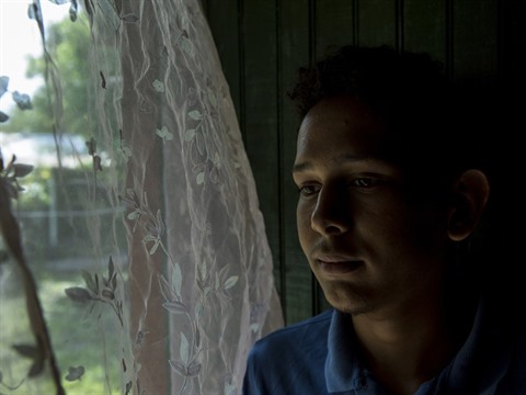 | Victor Fernando, 17 ans, se tient près de la fenêtre de son domicile de Villanueva, au Honduras. Il a été victime d'intimidation à l'école concernant son orientation sexuelle. |