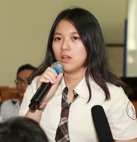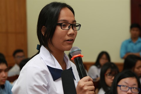 Sur le thème exacte : "Les élèves citadins et les comportements scolaires”, les participants ont eu l'occasion d'exprimés leurs opinions et suggestions. En particulier concernant le thème de la violence à l’école, Ngô Hai Uyên, lycéenne de Phu Nhuân (arrondissement de Phu Nhuân) a déclaré que la violence scolaire pouvait non seulement être physique mais aussi bien psychologique (critique, sarcasme, humiliation).