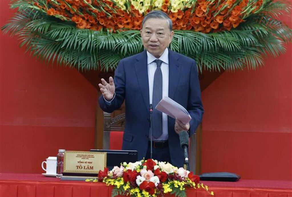 | Le secrétaire général du Parti, Tô Lâm, prenant la parole lors de la conférence. |