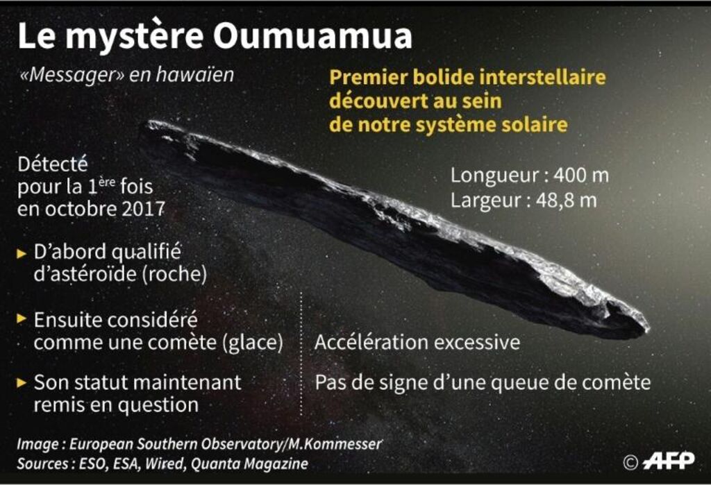 | Graphique sur Oumuamua, premier objet interstellaire découvert dans notre système solaire. |