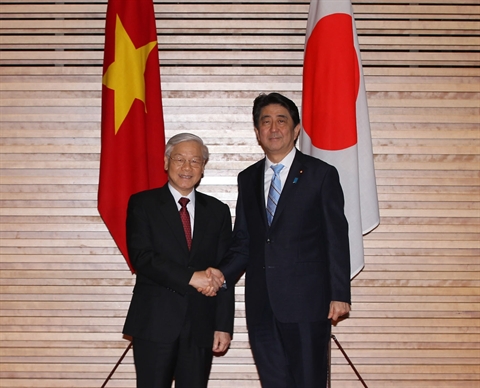| Nguyên Phu Trong et Shinzo Abe, le 15 septembre à Tokyo. |