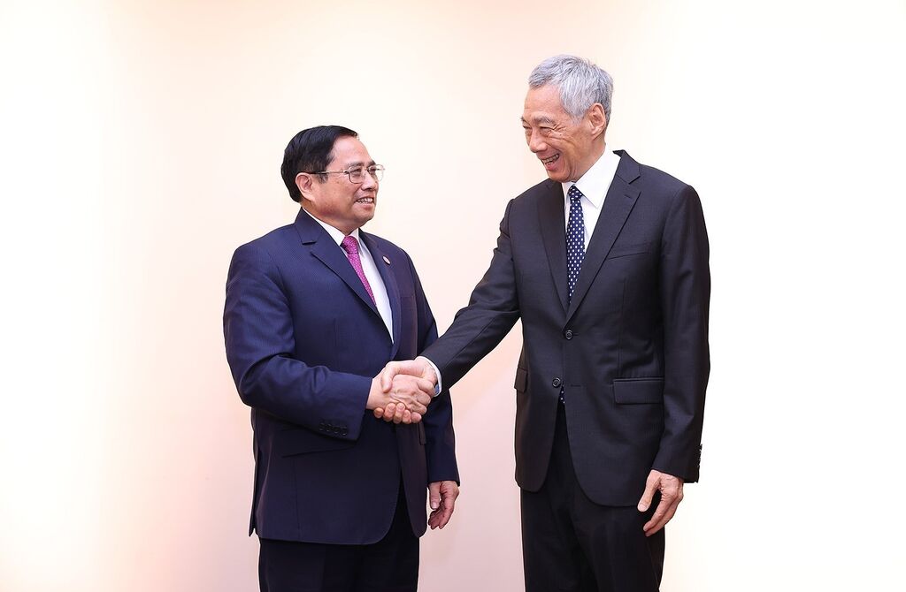 | Rencontre entre le Premier ministre Pham Minh Chinh et son homologue singapourien Lee Hsien Loong en mai 2022 aux États-Unis. |