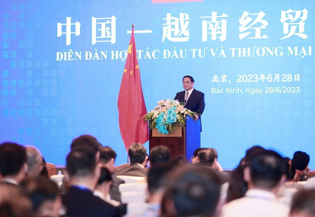 | Le Premier ministre Pham Minh Chinh s'exprime au Forum des affaires Vietnam - Chine. |
