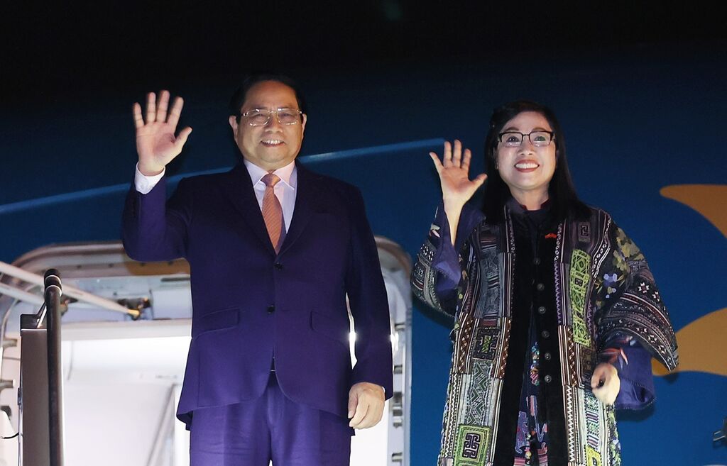 | Le Premier ministre Pham Minh Chinh et son épouse à l'aéroport international Esenboga, dans la capitale turque Ankara, le 28 novembre. |