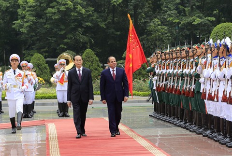 Trân Dai Quang et Abdel Fattah Al-Sissi ont affirmé la détermination de porter le commerce bilatéral à un milliard de dollars dans le futur proche, d’offrir les meilleures conditions aux entreprises vietnamiennes et égyptiennes spécialisées notamment dans les télécommunications, les technologies de l’information, le port maritime, la construction navale, l’agriculture, la transformation des produits aquatiques…