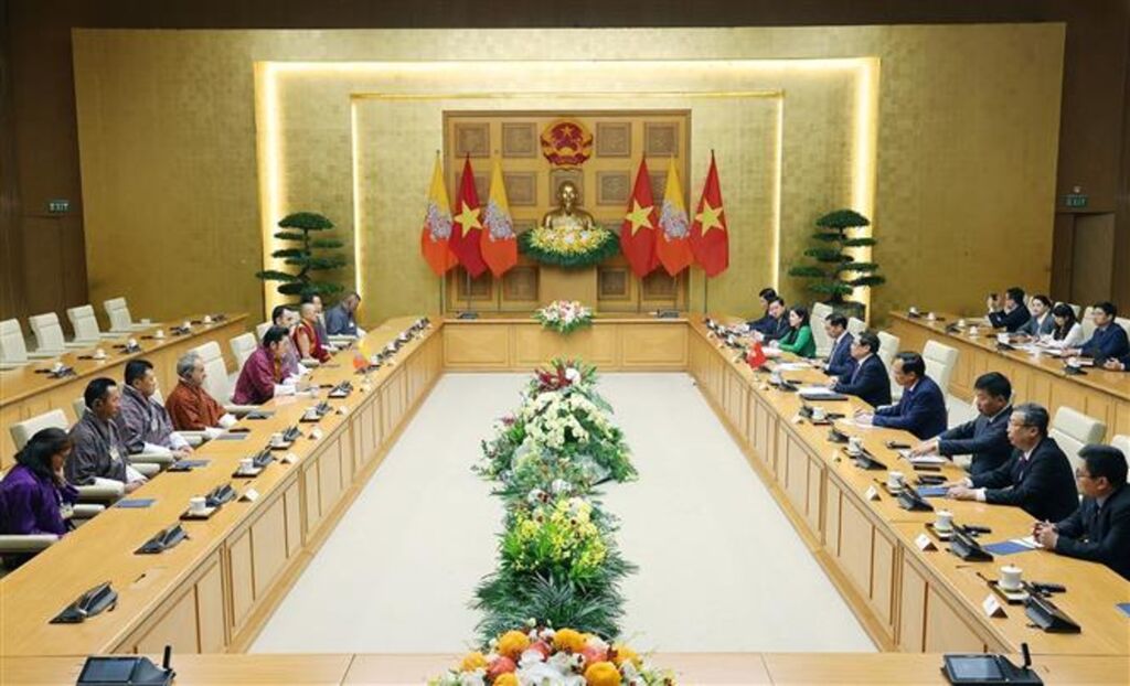 Le Premier ministre a chaleureusement salué la première visite officielle au Vietnam d’un chef d’État du Bhoutan, soulignant qu’il s’agissait d’un jalon important dans les relations bilatérales. Il a adressé ses félicitations pour les réalisations impressionnantes du Bhoutan sous le règne éclairé du roi, notamment en matière de développement économique durable, de préservation de l’identité culturelle et de protection de l’environnement. Il a également apprécié la philosophie du "Bonheur national brut", que le Bhoutan met en œuvre de manière cohérente, y voyant une source d’inspiration pour la communauté internationale dans la recherche d’un développement harmonieux, inclusif et durable.