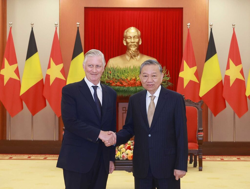 | Entrevue entre le secrétaire général du Comité central du Parti communiste du Vietnam Tô Lâm et le roi Philippe de Belgique le 1er avril à Hanoï. |
