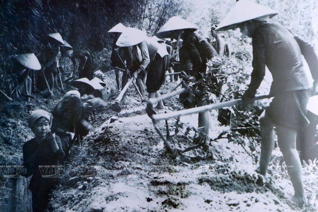 | Des habitants de la commune de Trung Lâp Ha à Cu Chi creusant des tranchées en 1966. |