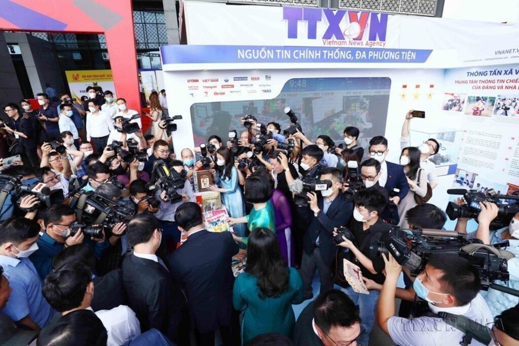 | Le stand de la VNA au Salon national de la presse attire toujours un grand nombre de visiteurs. |