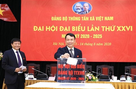 | Le directeur général Nguyên Duc Loi vote pour élire les membres du Comité exécutif du Comité du Parti de la VNA, le 14 août à Hanoï. |