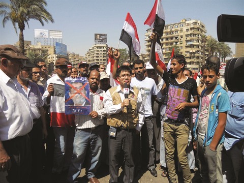 | Nguyên Huu Chiên, chef du Bureau de représentation de la VNA en Égypte, au cœur des manifestations dans le centre-ville du Caire en 2013. |