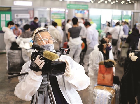| Un correspondant permanent de la VNA à Moscou filmant le rapatriement de quelque 300 Vietnamiens de Russie en mai 2020 en pleine pandémie de COVID-19. |