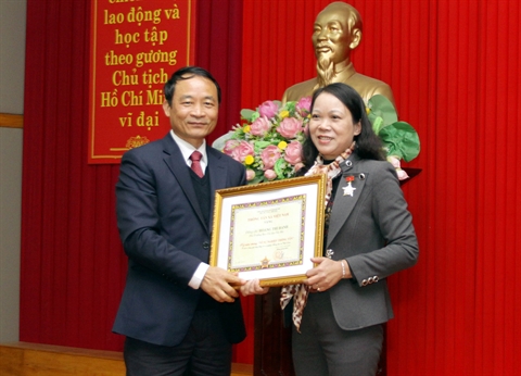 À cette occasion, le directeur général adjoint Lê Duy Truyên a remis l’insigne "Pour l’œuvre de la VNA" à la cheffe adjointe du Comité de pilotage de la région du Nord-Est, Hoàng Thi Hanh.