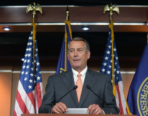 | Le président républicain de la Chambre des représentants, John Boehner, tient une conférence de presse, le 10 septembre. |