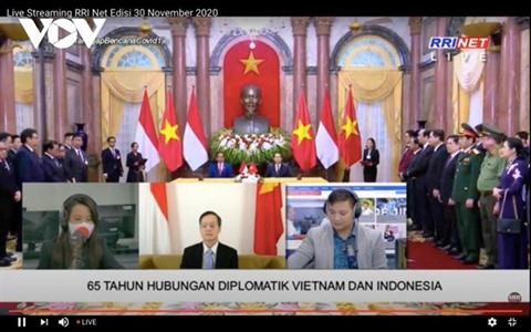 | Un dialogue radio interactif marquant le 65e anniversaire des relations diplomatiques VIetnam - Indonésie. |