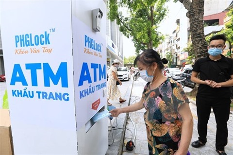45.000 masques médicaux seront distribués les lundi 24, mardi 25 et mercredi 26 août de 5h00 à 17h00 pendant trois semaines dès le 25 août par ce guichet automatique fabriqué par les Vietnamiens.