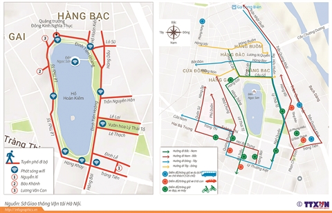 | Plan des rues piétonnes autour du lac de l’Épée restituée depuis le 1er septembre 2016. Photo : VNA/CVN |