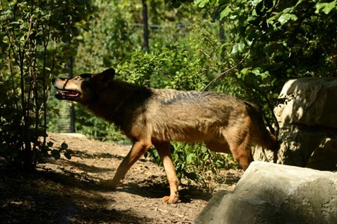 | Un loup dans le parc zoologique de Paris, le 12 avril 2015. |