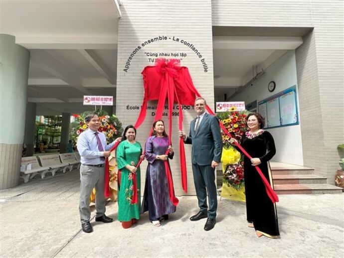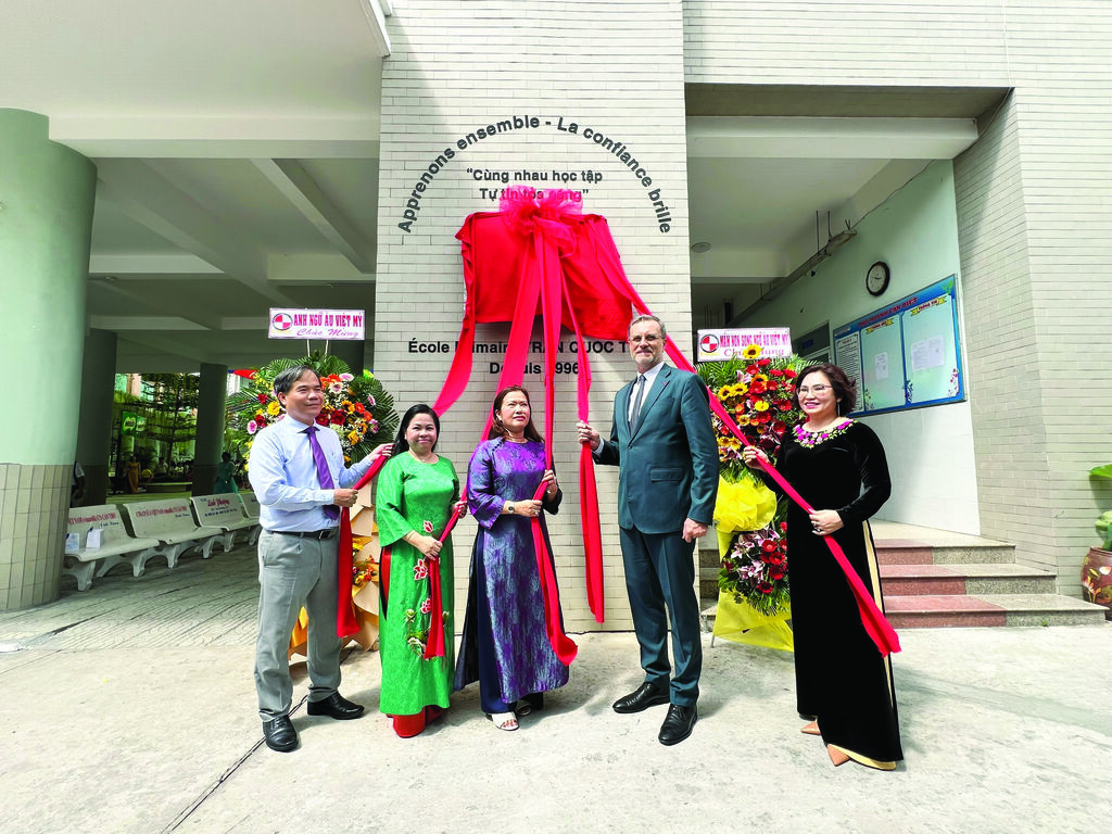 “Apprenons ensemble - La confiance brille”, comme l’indique ce slogan en français de l’École primaire Trân Quôc Toan, à Cân Tho (Sud), clairement visible à son entrée. Celle-ci est devenue la toute nouvelle recrue du réseau des établissements labellisés au Vietnam, lors d’une cérémonie tenue le 7 mars 2025.