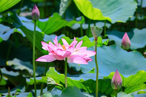 | En se promenant le long des rives du Lac de l'Ouest en été, l'odeur des fleurs de lotus rend les journées de grosse chaleur plus agréables. |