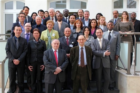 | Responsables des instituts et académies diplomatiques francophones au siège de l'OIF le 24 mars. |