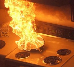 Hélas, dans l’esprit de beaucoup de personnes, qui dit feu dit eau pour l’éteindre. C’est une erreur gravissime qui a failli coûter à la cousine en question une épilation au chalumeau qui aurait fait l’admiration de ses collègues de travail. L’eau étant plus lourde que l’huile, elle va directement au fond de la friteuse, se transforme en vapeur et propulse l’huile hors de son contenant avec des superbes flammes digne de la Saint-Jean.