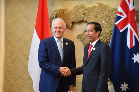 | L’ex-Premier ministre australien Malcolm Turnbull (gauche) devait rencontrer le président indonésien Joko Widodo la semaine prochaine. |
