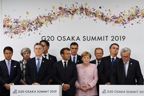| Les dirigeants des pays de l'UE et du Mercosur à Osaka, le 29 juin au Japon |