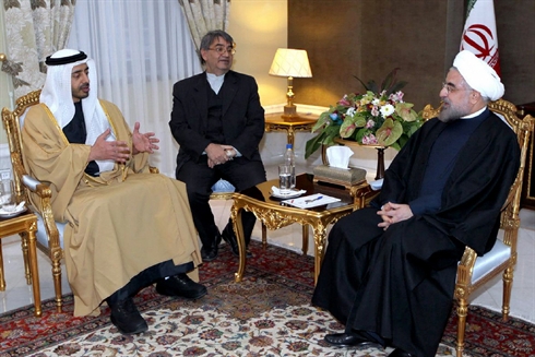 Le président iranien Hassan Rohani (droite) et le chef de la diplomatie émiratie, cheikh Abdallah bin Zayed Al-Nahyane (gauche), le 28 novembre à Téhéran. Photo : AFP/VNA/CVN |