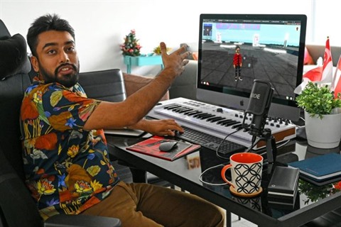 | L'entrepreneur Vignesh Sundaresan, également connu sour le pseudo MetaKovan, chez lui à Singapour le 7 avril |