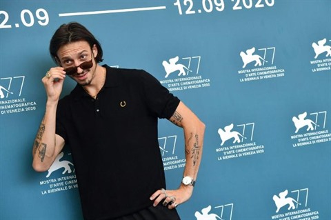 | Le rappeur Elvis Roméo, lors d'une séance photo au festival du cinéma de Venise, le 5 septembre. |