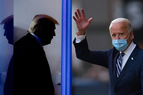 | Donald Trump à la Maison Blanche le 17 avril 2020 et Joe Biden à Wilmington, dans le Delaware, le 10 novembre. |