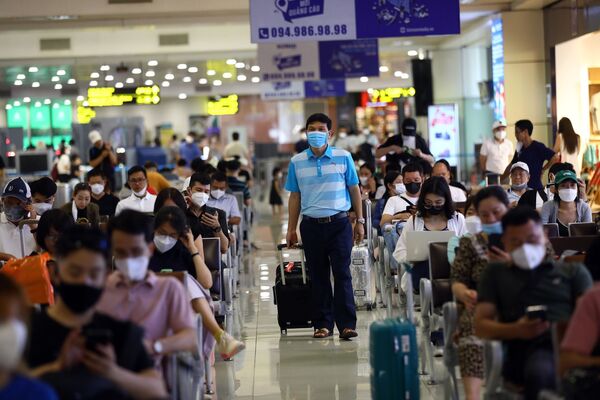 | Passagers à l'aéroport international de Nôi Bài à Hanoï. |