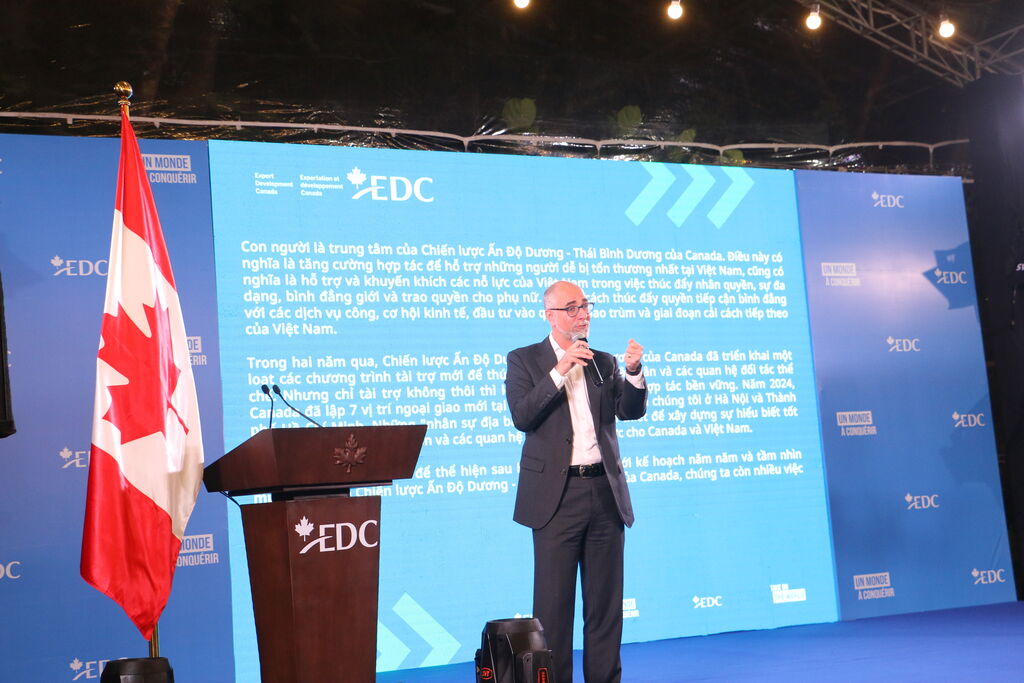 | Shawn Steil, ambassadeur canadien au Vietnam, s’exprime à la cérémonie d’ouverture du bureau d'EDC à Hô Chi Minh-Ville. |