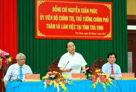 | Le Premier ministre Nguyên Xuân Phuc (débout) travaille avec les autorités de la province de Trà Vinh, le 23 avril dans cette province méridionale. |