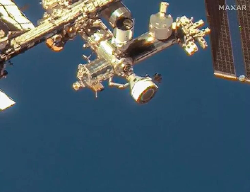 | Image prise le 7 juin 2024 par Maxar Technologies montrant la capsule spatiale Starliner de Boeing amarrée au port avant de la Station spatiale internationale. |