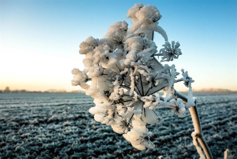 | La campagne givrée, au matin du 30 décembre 2016, près de Godewaersvelde, dans le Nord. |