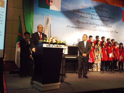 | L'ambassadeur d'Algérie au Vietnam, Mohamed Berrah, a pris la parole le 1er novembre à Hanoï lors d’un banquet organisé à l'occasion de la 62e Fête nationale de son pays. Photo : Phuong Mai/CVN |
