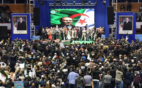 | Des membres du Front de libération nationale du président Abdelaziz Bouteflika à Alger le 28 avril. |