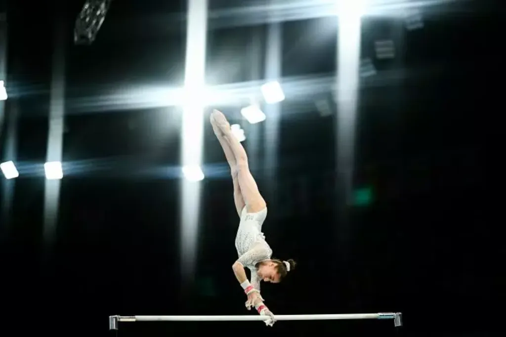 | Kaylia Nemour, qui excelle aux barres, a décroché l'excellente note de 15.700, loin devant la Chinoise et ses 15.500 points. |